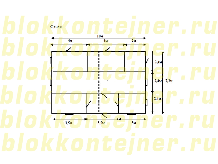 Блок - модуль  10,0 *7,2*2,5м  состоит из 6-ти шт. блок-контейнеров